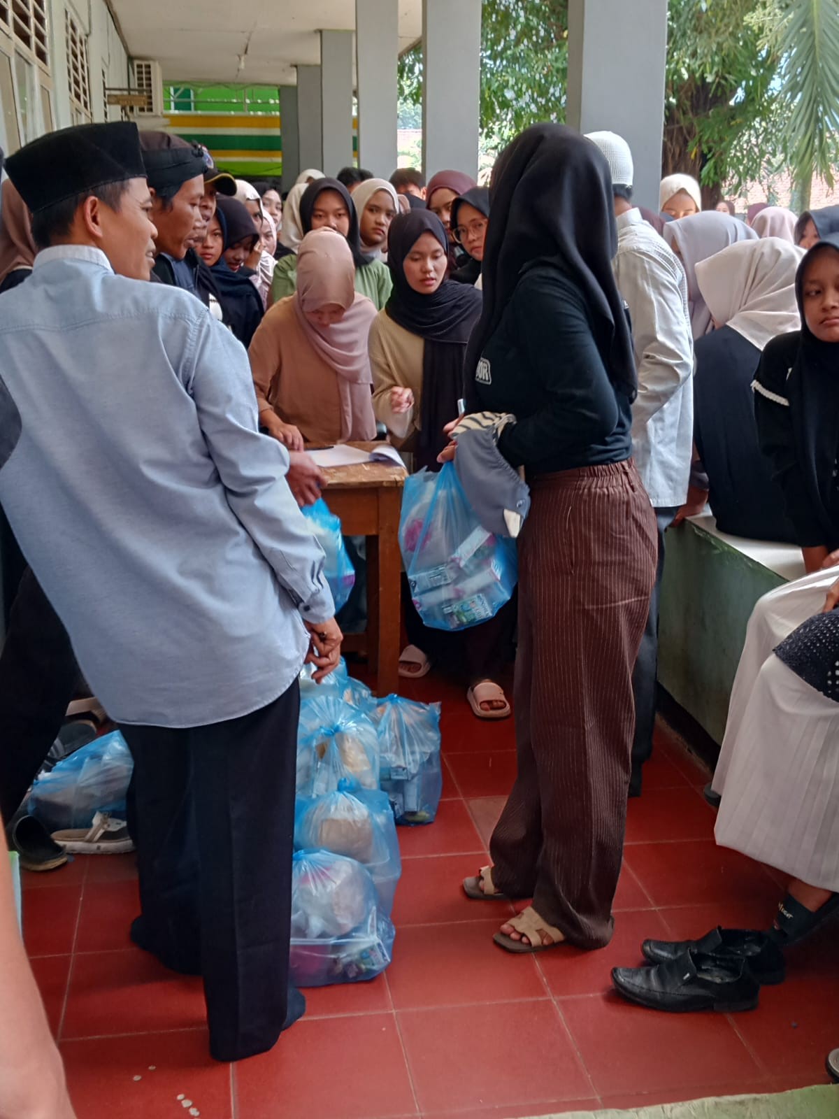 Proses pembagian bantuan melibatkan para Wakil Kepala Madrasah yang dipimpin oleh Waka Kesiswaan, Bapak Tulus Pamuji Santoso, S.Pd., M.Pd. Dan Bapak Iqbal Hidayat Noor, S.Pd.,M.Pd Dalam pelaksanaannya, pembagian bantuan dilakukan oleh Tim MBG Madrasah, sementara para Waka Madrasah turut memantau jalannya kegiatan serta mengatur jalur antrian siswa yang telah dibagi agar proses penyaluran berjalan tertib dan lancar.