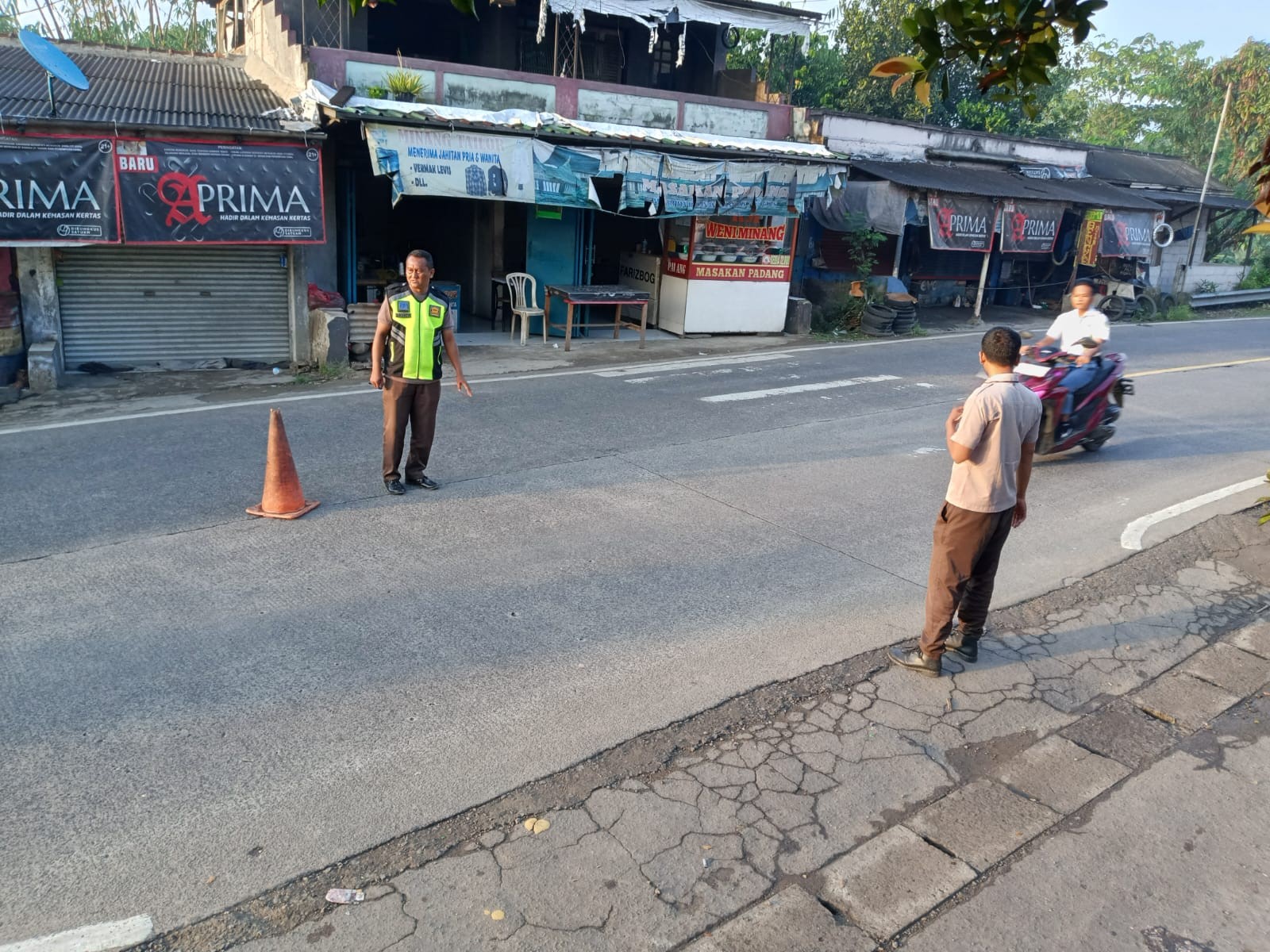 Pada hari ini, petugas keamanan yang berjaga adalah Bapak Jambul dan Bapak Ari Rahman. Keduanya terlihat sigap menjalankan tugas di tepi jalan dengan penuh tanggung jawab. Mereka mengatur lalu lintas yang melintas sekaligus membantu siswa dan warga madrasah menyeberang jalan dengan aman.