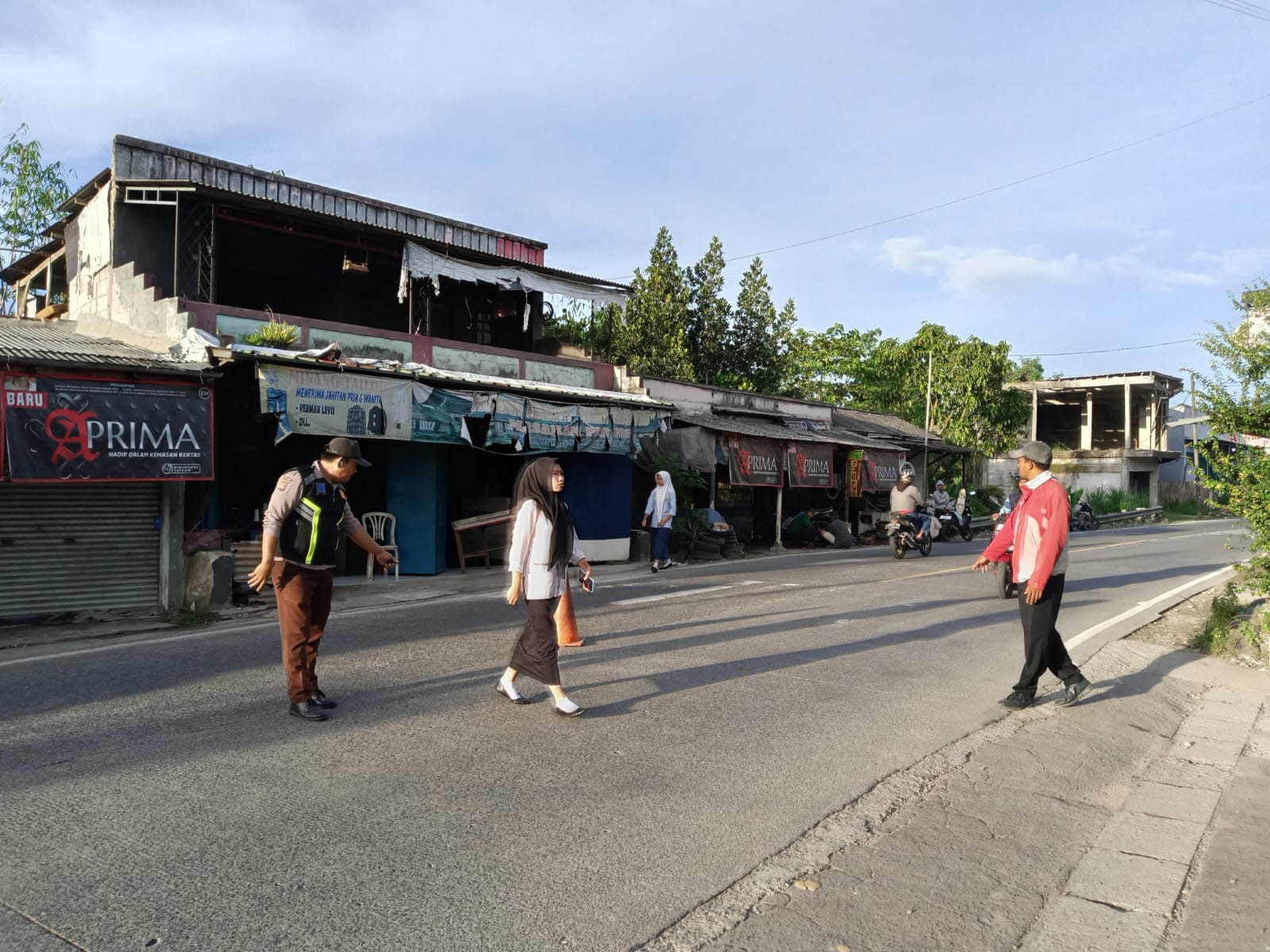Dengan mengenakan seragam lengkap, keduanya berdiri di titik-titik strategis area gerbang. Mereka dengan ramah dan cekatan membantu menyeberangkan siswa, guru, serta staf tata usaha yang hendak memasuki area sekolah, sembari mengatur arus kendaraan agar tetap mengalir lancar dan tidak terjadi penumpukan.